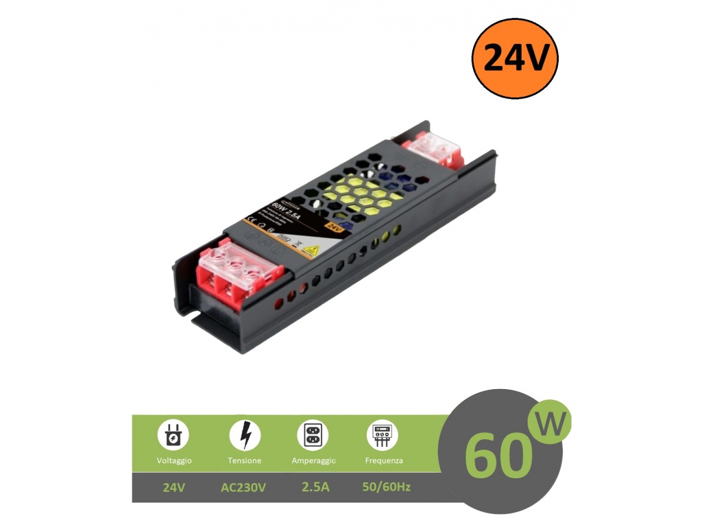 ALIMENTATORE SLIM STABILIZZATO 24V 60W SWITCH TRASFORMATORE 2.5MHA