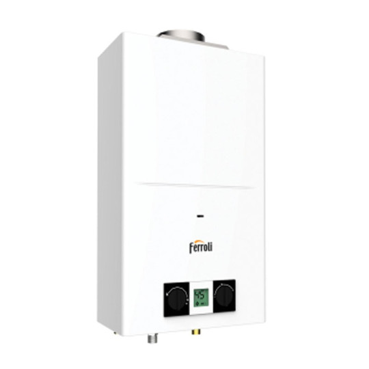 SCALDINO FERROLI PEGASO ECO CAMERA APERTA 11 LT LOW NOX METANO, CODICE GCC1MKAA, SCALDACQUA FERROLI A TIRAGGIO NATURALE, PRODUZIONE ACQUA ISTANTANEA, MODULANTE, DISPLAY FRONTALE, DIMENSIONI COMPATTE8019190441816